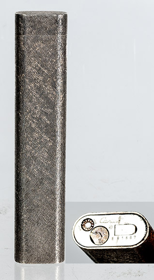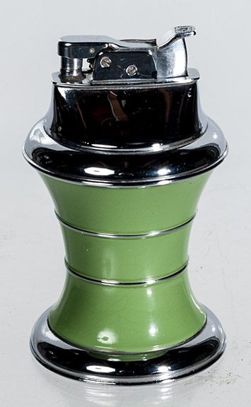 | Art deco Evans table lighter. Green lacquer ca.1939- Item #22-122, $275.00 | English “Classic” lighter, rhodium plate, 1930’s- Item #22-123, $150.00 |