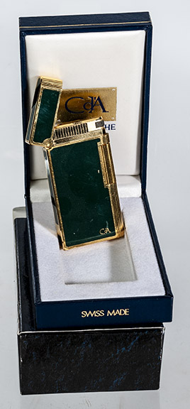 | Dupont lighter black enamel never used in original red box- Item #22-129, $475.00 | Carandache butane lighter. Made In France. Mint in box- Item #22-130, $550.00 |