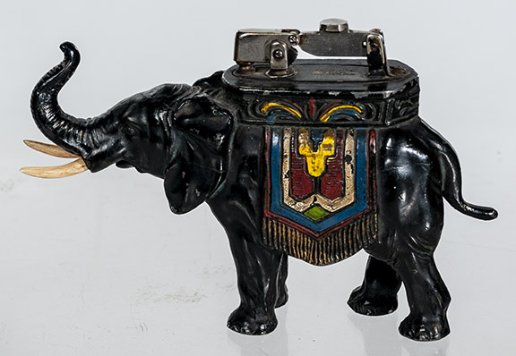 | Two Lancel lighters. 1930’s- Item #22-131, $200.00 Each | Elephant table lighter. Made in Germany- Item #22-132, $275.00 |