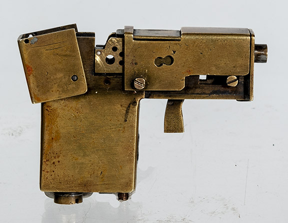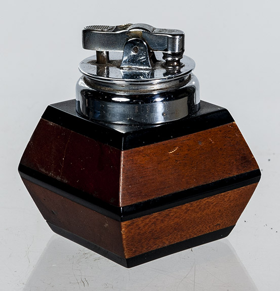 | Handmade trench art gun shaped lighter, WW I- Item #22-145, $325.00 | Sterling silver Lapis and white quartz table lighter. made in France- Item #22-146, $575.00 |