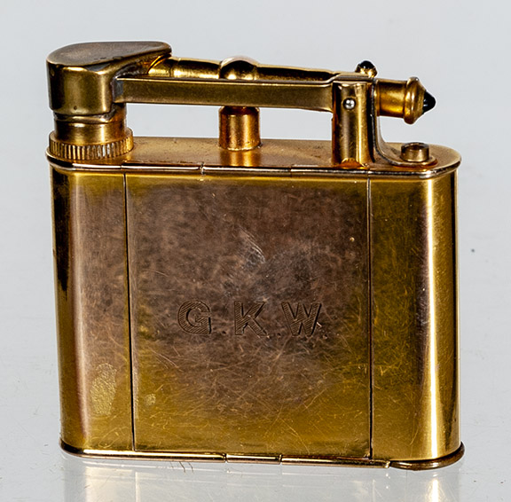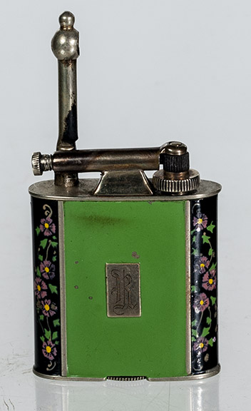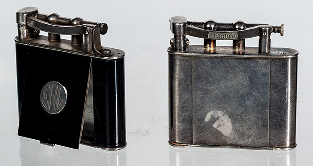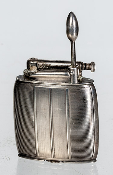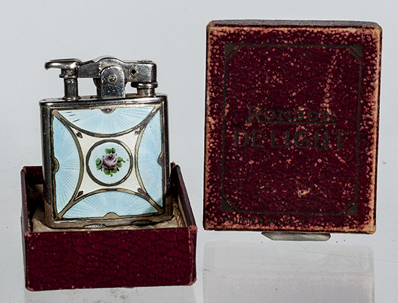 | Marathon – beautiful multi-colored lacquered Marathon lift-arm lighter- Item #22-150, $475.00 | Sterling silver “cushion” or “pillow shaped Clark lighter- Item # 22-151, $600.00 |